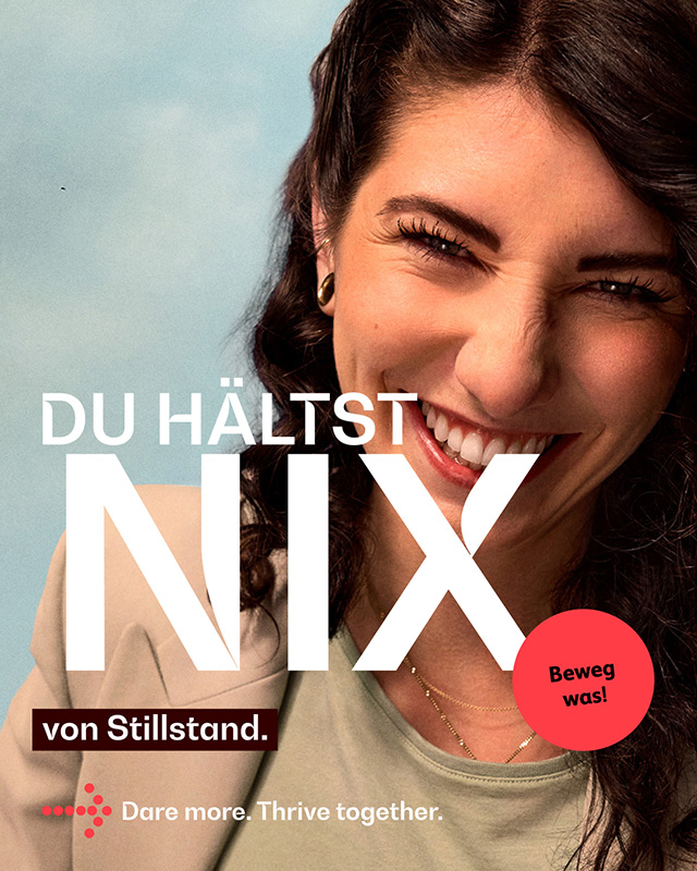 Grundlagen für den gemeinsamen Erfolg. Nach innen möchte unsere Kampagne deshalb auf drei Ebenen wirken: Beteiligen, aktivieren und inspirieren. Dafür entwickeln wir verschiedenste Medien, Formate und Aktionen – vom Sticker bis zum Event.
